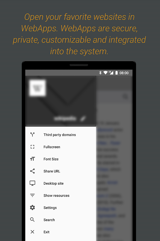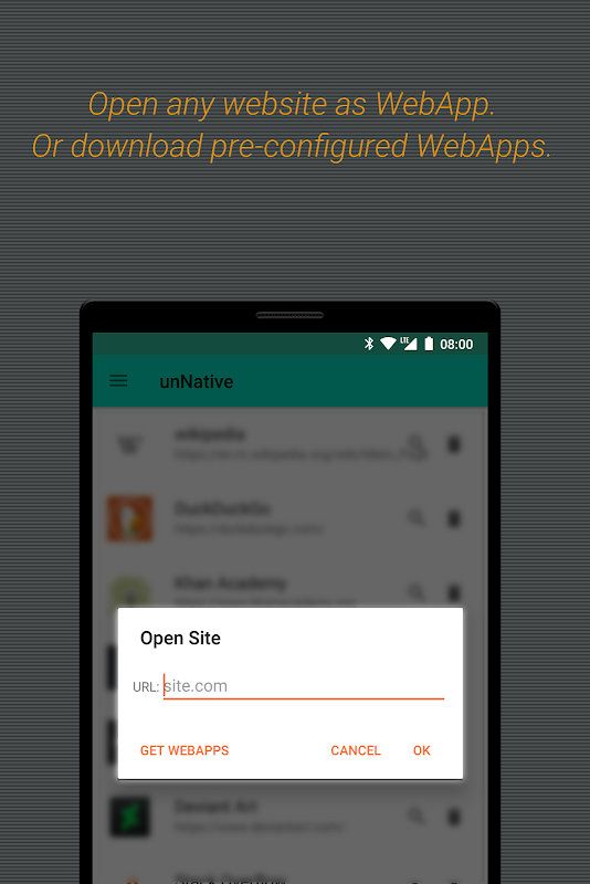 Save your websites as WebApps within unNative and enjoy unique customizations and system integrations for each, while being safe from malware and cross-site trackers.