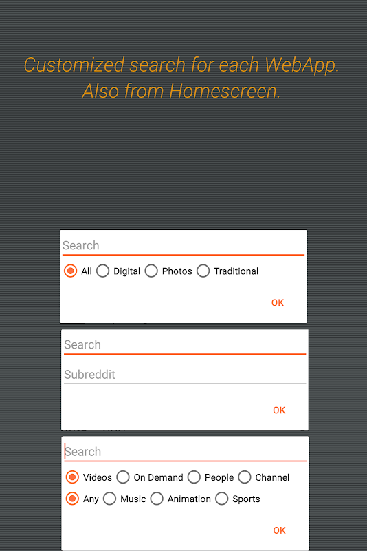 • System Integrations: Open links from other apps directly to the correct WebApp in unNative. Set up sharing so you can share links directly to the WebApps. Get advanced search options for your WebApps. You can even replace your system search with unNative search and find anything in any WebApp directly from the homescreen.
