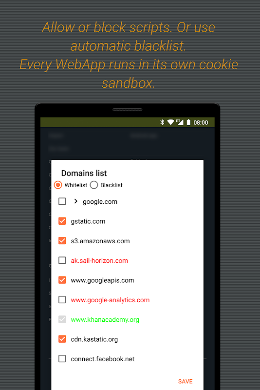• Customization: Save shortcuts within WebApps for ease of use. Open multiple tabs for when you need the flexibility. Change the font size if your eyes too tired, use the desktop site when the mobile site is not enough and hide the system bars when the screen is too small.