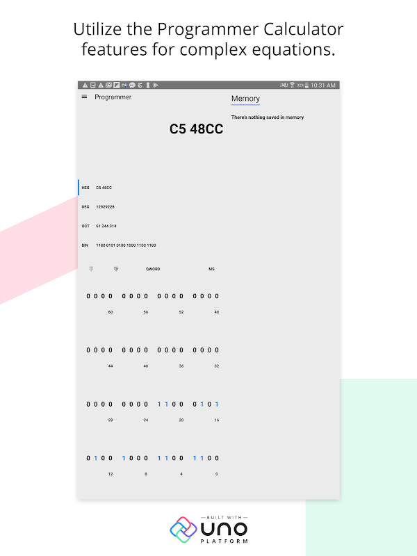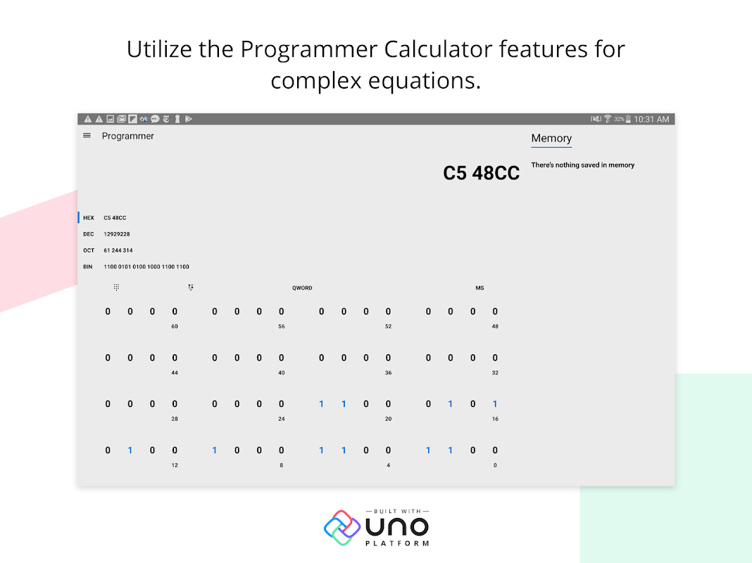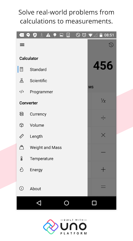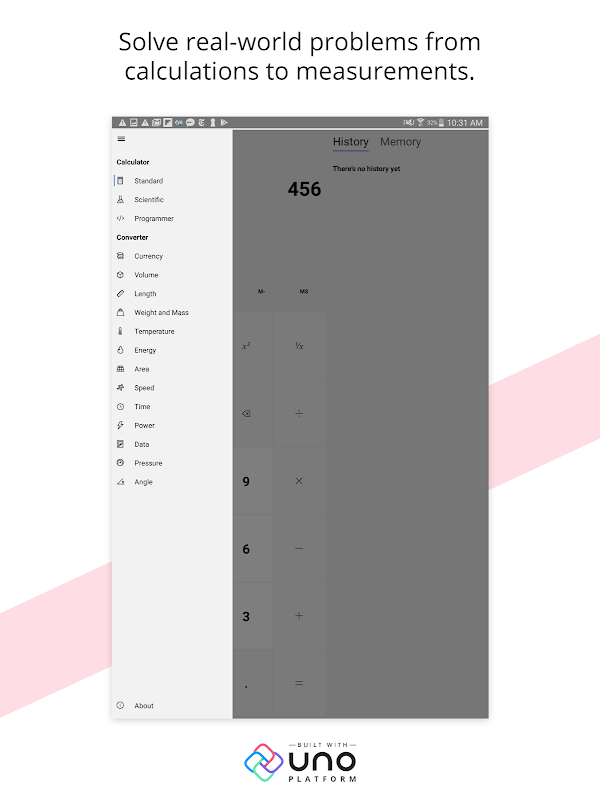 The powerful Windows Calculator receives a makeover from Uno Platform with a wide variety of features. From calculations to measurements of size, temperature, speed, energy, currency and more, the calculator is a powerful one-stop-shop for all calculation-related needs.