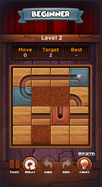 The gameplay is as simple as moving and sliding the tile slots with your finger and your objective is to keep sliding until you find a path for the ball to roll to the specified Goal. While the first levels of this brain training puzzle game are easy to solve, you get to face more difficult challenges as you progress.