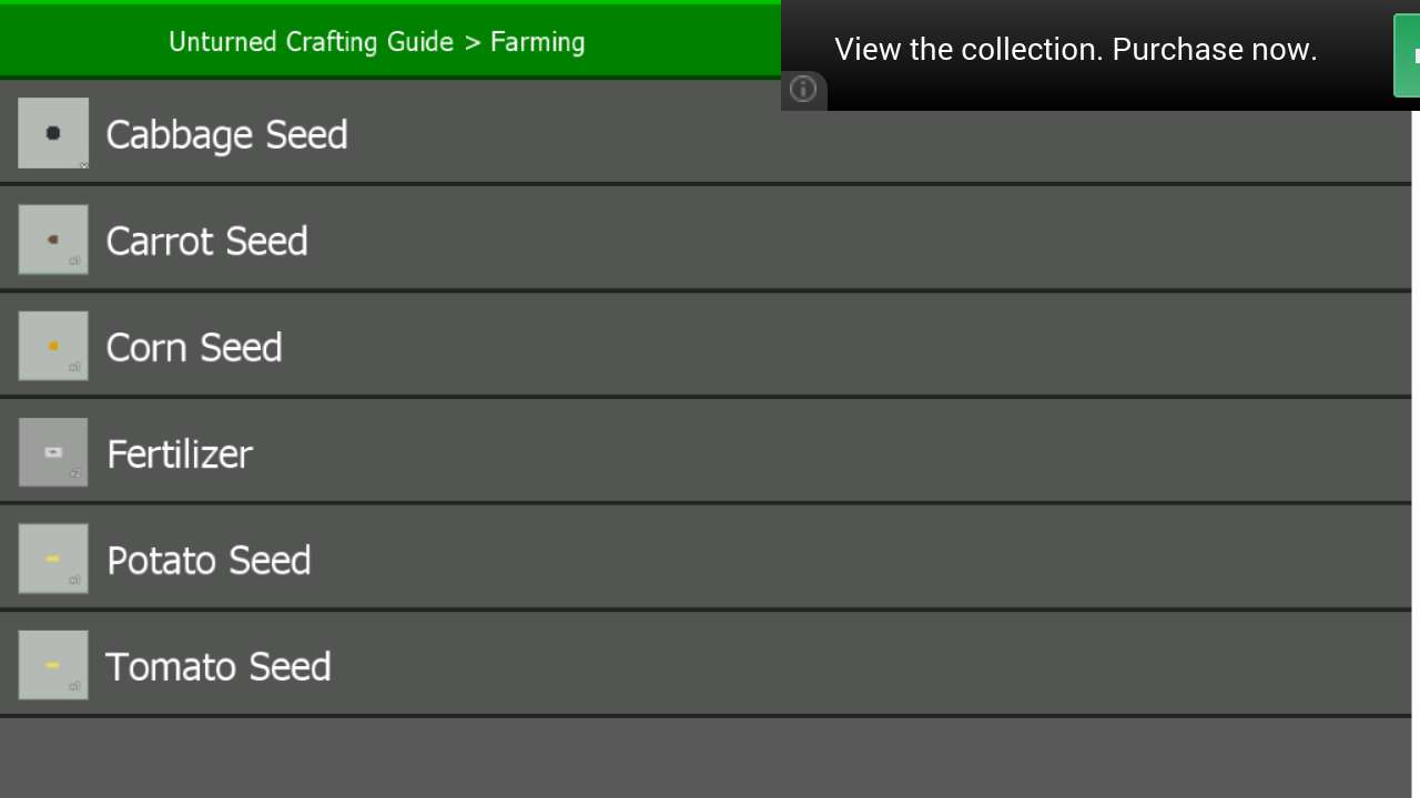 Beat the competition with your secret weapon, this app! This app holds just about all known recipes currently in "Unturned." Stock up and start building your post apocalyptic empire!