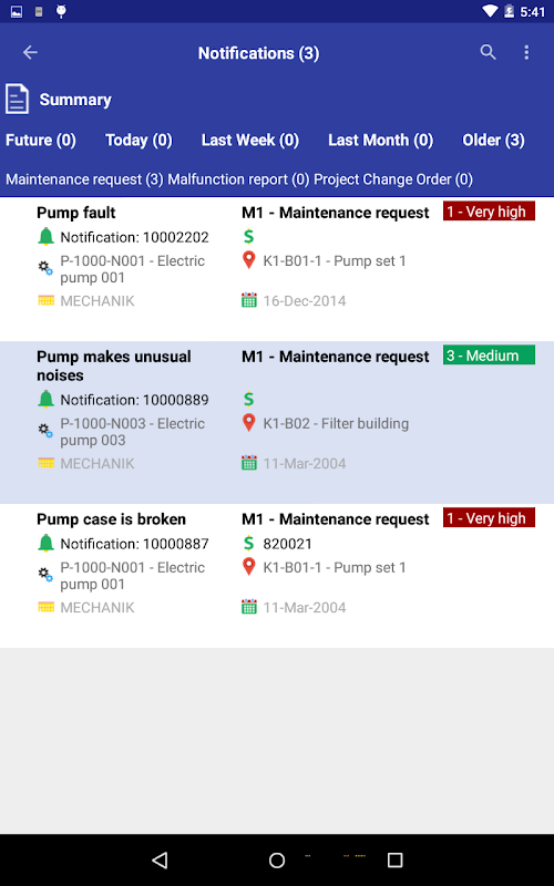 Download rounds with equipment, functional locations, measurement ranges and trends in mobile