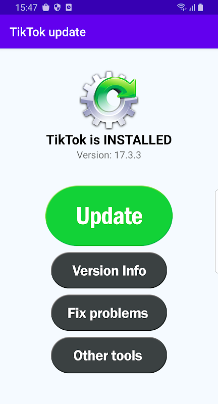 Update TikTok is a simple app which will show you if your Tiktok app version is the newest one available to download for free for Android. Just open the app and check if you need to update your social app!
