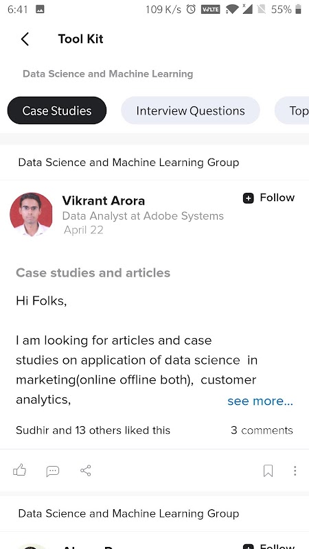 It is the best app for professional communities in Data Science/Machine Learning & Product Management