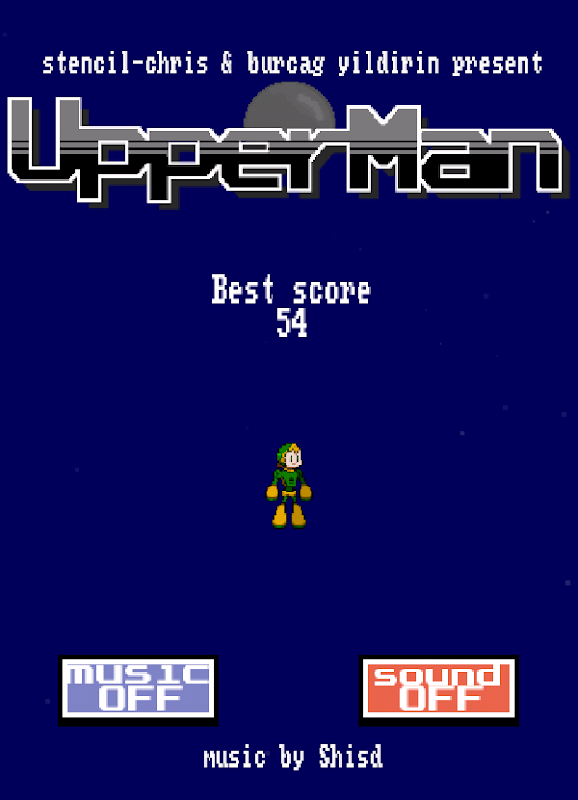 UpperMan is a game about an android called UpperMan, whose goal is to break through the earth's atmosphere using his hand and foot jet boosters, and collect planetary matter to use as his own fuel and survive. But the various military forces of the world have misunderstood UpperMan's intentions, and are shooting lasers into the sky to bring him down!