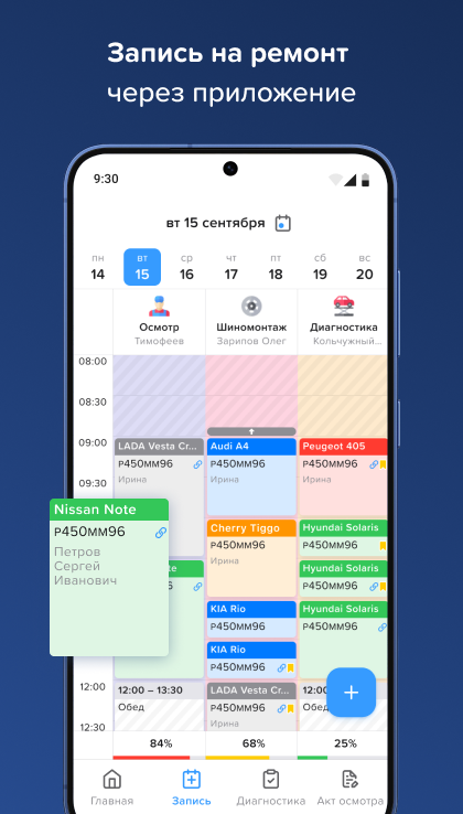 ایپلی کیشن آپ کو اپنے اسمارٹ فون سے مرمت کے ریکارڈ کا انتظام کرنے کی اجازت دیتی ہے: دیکھیں، ترمیم کریں، شامل کریں اور حذف کریں۔ ایپلیکیشن اور پروگرام مکمل طور پر جڑے ہوئے ہیں: ایک ڈیوائس پر کی گئی تبدیلیاں فوری طور پر دوسرے پر ظاہر ہوتی ہیں۔ اس کی بدولت، سروس سٹیشن ایڈمنسٹریٹر کلائنٹس کی درخواستوں کو فوری طور پر قبول کر سکتا ہے اور انہیں کام کے شیڈول میں داخل کر سکتا ہے۔