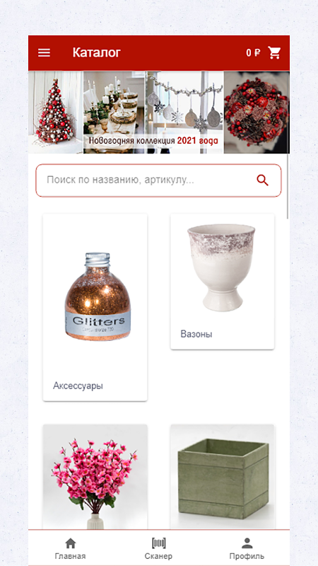 10 ہزار سے زائد مصنوعات کے آرڈر دینے کے لئے درخواست ، بشمول: سیرامکس ، شیشہ ، لکڑی ، پلاسٹک ، دھات ، تحائف اور پھولوں کے لئے پیکیجنگ ، مصنوعی پودے اور قدرتی آرائشی مواد ، پھولوں کے سازوسامان اور اوزار ، اور بہت کچھ۔ درخواست میں اندراج کرتے وقت ، صارف کا ذاتی اکاؤنٹ میں توسیع شدہ فعالیت دستیاب ہے (آرڈر مینجمنٹ ، وفاداری کا نظام ، وغیرہ)