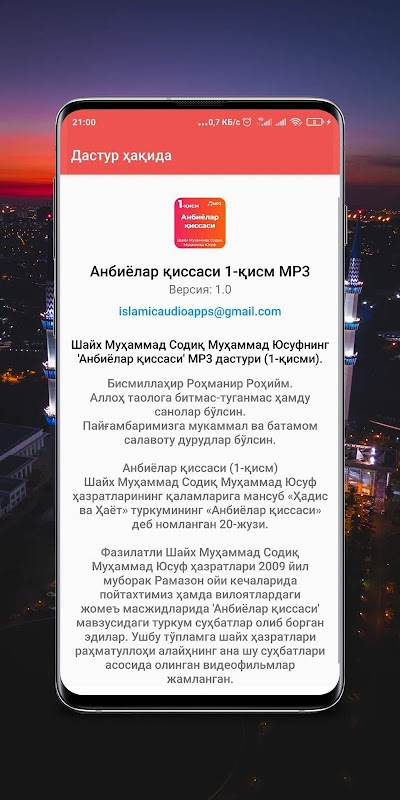 Анбиёлар қиссаси 1-қисм MP3 Шайх Муҳаммад Содиқ... APK معلومات