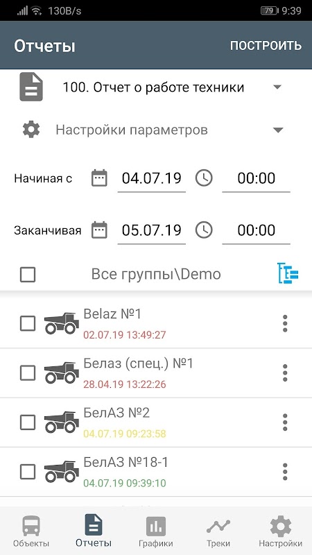 Получайте доступ к отчетам прямо со своего смартфона, в них вы можете собрать сводную информацию о пробеге и топливе, времени работы техники, о совершенных рейсах, простоях и многое другое.