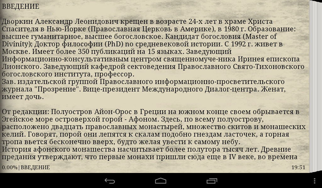 Новая книга Александра Дворкина может показаться необычной тому, кто знает этого автора исключительно по антисектантским и историко-церковным трудам. Здесь, в рассказах о своих поездках на Святую гору Афон, перед нами – тонкий лирик, способный средствами языка передать не только информацию, но и настроение. К тому же лирическая интонация книги дополняется и юмором (к примеру, в рассказах "Крестный ход", "Как мы мешали людям приходить в Православие").