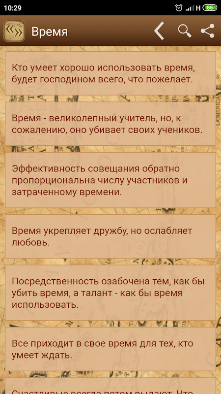 Приложение содержит более 1500 афоризмов на разные темы. В приложении Вы сможете найти афоризмы о любви и дружбе, о жизни и смерти, о счастье и судьбе, в общем, обо всем, что случается с нами в жизни.