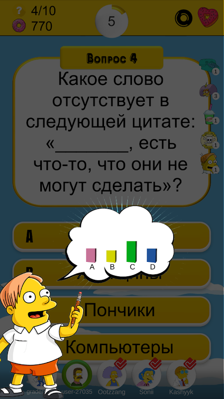Ты являешься страстным поклонником интеллектуальных игр, вроде Своя игра и не пропускаешь ни одного выпуска Что, Где, Когда?, но тебе надоели их серьезные темы и хочется немного развлечься? Тогда тебе точно понравится эта игра. Мульт Quiz - игра в вопросы и ответы по обширной базе. Эта игра призвана прежде всего для веселого и полезного времяпрепровождения, а также проверки своих знаний по популярным мультфильмам.