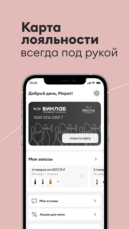 اپنی سیٹنگز میں پش نوٹیفیکیشنز کو آن کر کے وائن، اسپرٹ اور مشروبات کی دیگر اقسام پر باقاعدہ پروموشنز اور رعایت کے بارے میں جاننے والے پہلے فرد بنیں۔ "میرے لیے پروموشنز" سیکشن میں اپنے ذاتی اکاؤنٹ میں منافع بخش ذاتی پیشکشوں پر نظر رکھیں۔