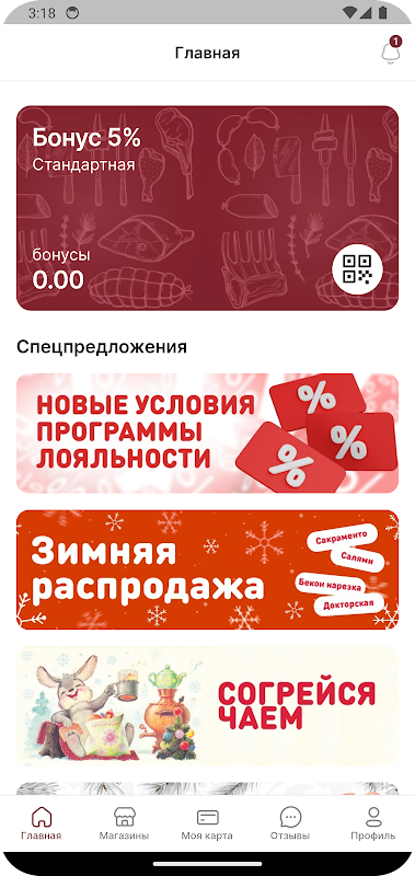 "وولگوگراڈ میٹ پروسیسنگ پلانٹ" ایپلیکیشن میں رجسٹر ہوں اور اسٹورز کے سلسلے میں خریداری کے لیے بونس پوائنٹس حاصل کریں۔