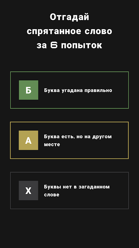 تاتاری زبان میں پانچ حروف پر مشتمل ایک لفظ بنتا ہے۔ چھپے ہوئے لفظ کا اندازہ لگانے کے لیے چھ کوششیں ضروری ہیں، جبکہ دوسرے الفاظ کا تعارف کرانا۔ اشارے دیئے جائیں گے: کیا خفیہ الفاظ میں درج کردہ لفظ سے کوئی حروف موجود ہیں؟ گرین سیل - خط اپنی جگہ پر ہے، پیلا سیل - خط اپنی جگہ پر نہیں ہے، گرے سیل - لفظ میں کوئی حرف نہیں ہے۔