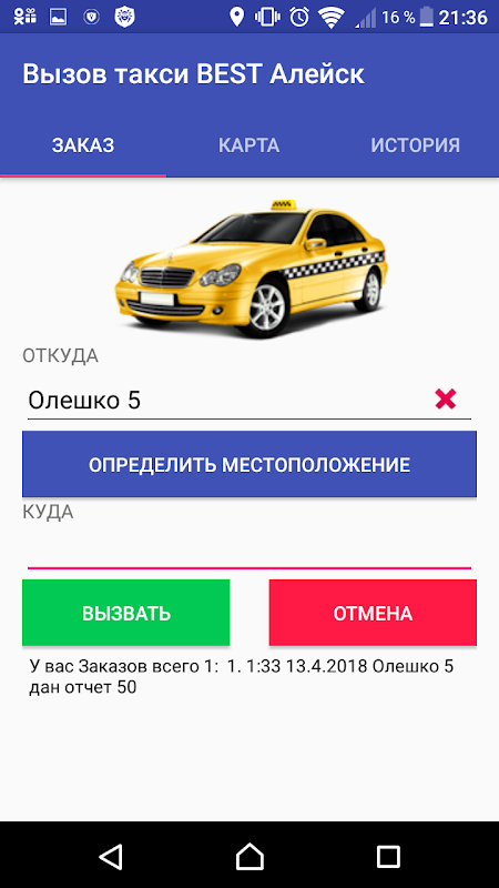 The application allows a smartphone to call a taxi BEST city Aleisk