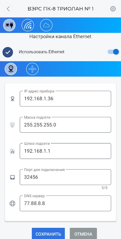 آلات کی نگرانی اور کنٹرول VERS-PK 2/4/8/16/24 TRIOLAN, VERS-PU TRIOLAN, VERS-HYBRID TRIOLAN, VERS-LEON TRIOLAN بذریعہ BT, WiFi، مقامی نیٹ ورک اور انٹرنیٹ کے ذریعے۔