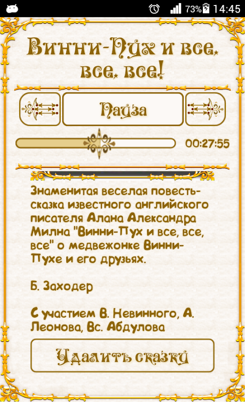 پریوں کی کہانیاں ڈاؤن لوڈ کرنے کے لئے ، ایپلی کیشن کو انٹرنیٹ تک رسائی درکار ہے۔ کام سننے کے لئے عالمی نیٹ ورک تک رسائی کی ضرورت نہیں ہے۔