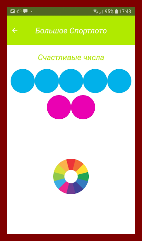 یہ غیر ضروری اختیارات اور ترتیبات کے بغیر ایک آسان اور استعمال میں آسان ایپلیکیشن ہے۔ آپ جس لاٹری میں دلچسپی رکھتے ہیں اس کا انتخاب کریں، کثیر رنگ کی پٹیوں سے بنے گول بٹن پر کلک کریں اور لکی نمبرز کا مجموعہ حاصل کریں۔