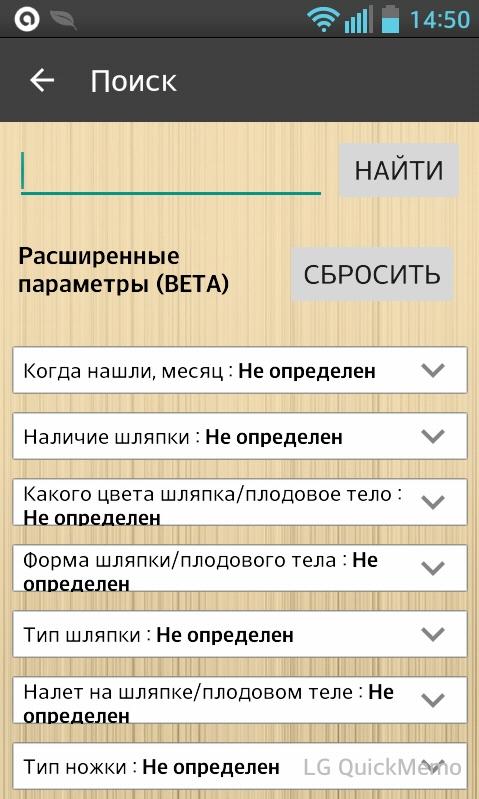 14. Поиск осуществляется по всем трем разделам программы по названию и описанию объекта поиска. Для грибов дополнительно можно воспользоваться расширенной фильтрацией (определитель грибов). Запоминает результаты.