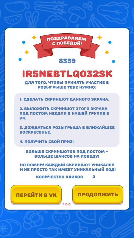 اگر آپ لیپ ٹاپ یا پی سی پر فلم دیکھتے ہیں، تو اس وقت آپ اپنا فون استعمال کر کے پیسے کما سکتے ہیں، ہماری ایپلی کیشن میں، صرف ٹماٹر پر کلک کریں، اگرچہ آپ کر سکتے ہیں۔ جب نمبر ہفتے کے نمبر سے میل کھاتا ہے، تو آپ کو "وکٹری ونڈو" نظر آئے گا، جس کا اسکرین شاٹ آپ کو Vk گروپ میں ہفتے کی پوسٹ کے نیچے لینا اور رکھنا ہے۔ اس طرح، یوٹیوب پر کنچک یا ویڈیو دیکھ کر، آپ ہماری موبائل ایپلیکیشن کا استعمال کرکے واجبات پر کما سکتے ہیں۔