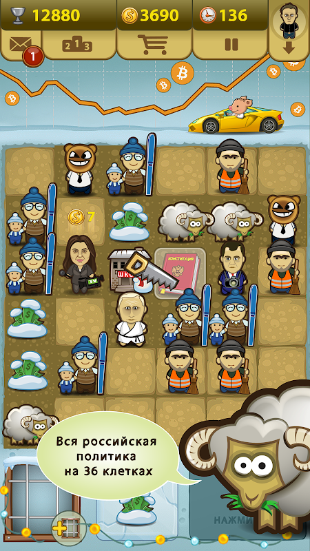 کھیل کا مقصد آسان ہے۔ اعداد و شمار کو 6x6 گرڈ پر رکھ کر ، آپ ان کے "کیریئر کی نمو" دیکھیں گے۔ تین یا دو سے زیادہ ایک جیسی شخصیات ، جو شانہ بہ شانہ رکھی گئی ہیں ، اعلی درجہ کے ساتھ ایک میں تبدیل ہوجائیں گی: وزرا حکومت بناتے ہیں ، ڈپٹی ڈوما تشکیل دیتے ہیں ، اور اسی طرح کی۔ آپ کا کام طویل عرصے تک سیاسی میدان میں رہنا ہے۔ یہاں تک کہ وزیر اعظم یا صدر کی نشستیں بھی اس کھیل میں حتمی مقاصد نہیں ہیں - ڈیمو کریسی آپ کو مزید ٹھنڈا ہونے دے گی! آپ کے ہاتھوں میں دیکھا!