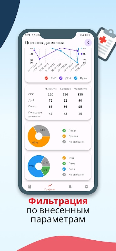 ایپلیکیشن کا انٹرفیس آسان اور آسان ہے، جس سے آپ تیزی سے اور آسانی سے ڈیٹا داخل کر سکتے ہیں۔ آپ اوپری اور زیریں دباؤ، نبض، پیمائش کا وقت، وزن، درجہ حرارت، خون میں آکسیجن کی سطح کے ساتھ ساتھ لی گئی ادویات کے بارے میں معلومات ریکارڈ کر سکتے ہیں اور تبصرے چھوڑ سکتے ہیں۔