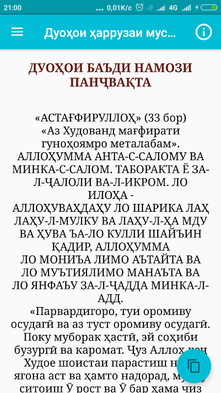 Дуоҳои ҳаррузаи мусалмон бо забони тоҷикӣ.
