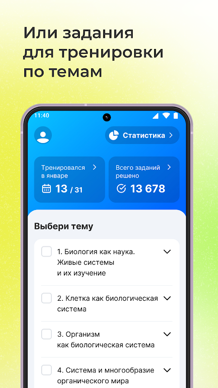 "یونیفائیڈ اسٹیٹ ایگزامینیشن بائیولوجی" کے ساتھ مطالعہ کریں اور اپنے امتحانات میں اعلیٰ نتائج حاصل کریں! ابھی ایپلیکیشن ڈاؤن لوڈ کریں اور یونیفائیڈ اسٹیٹ امتحان 2025 کے لیے اچھی تیاری کریں۔ حیاتیاتی عمل کے مطالعہ کی گہرائی میں جائیں اور عملی مسائل کو حل کریں۔