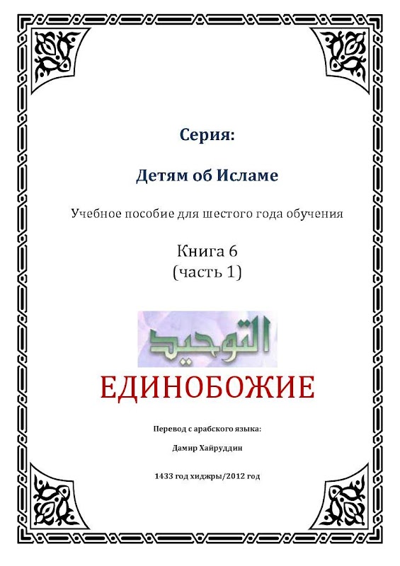 Настоящее учебное пособие посвящено главному и важнейшему столпу Ислама — единобожию. Уникальность и новизна пособия состоит в том, что впервые на русском языке оно адресовано детям и их родителям. Цель пособия, рассчитанного на шесть лет обучения, заключается в формировании у детей основ единобожия и вероубеждения. Структурно каждая книга пособия состоит из уроков, содержащих основной текст рассматриваемой темы, тематический словарь, комментарии, практические упражнения и задания для повторения. Поскольку перевод на русский язык сопровождается параллельным арабским текстом, материал пособия может быть использован для изучения арабского языка как в системе дополнительного обучения, так и самостоятельно.