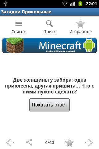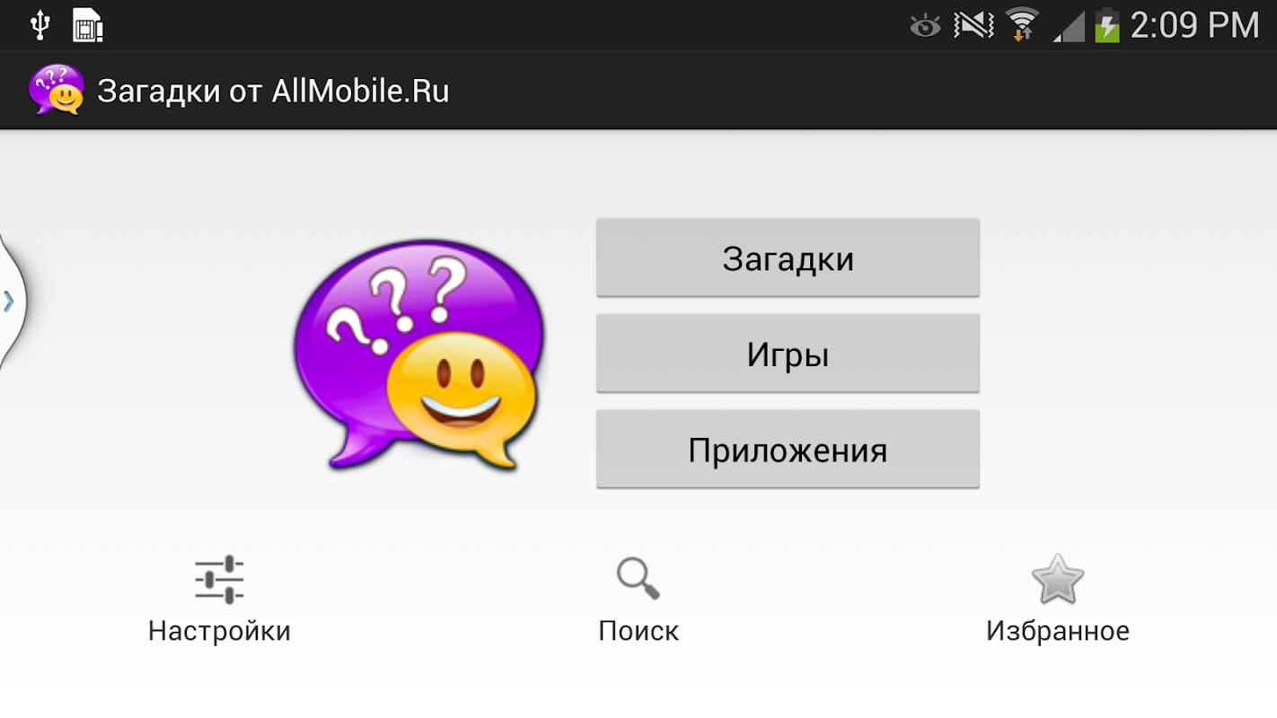 Вы сможете составить свой список избранных загадок, а также послать загадку с ответом или без своим друзьям в социальные сети, по почте или по sms.