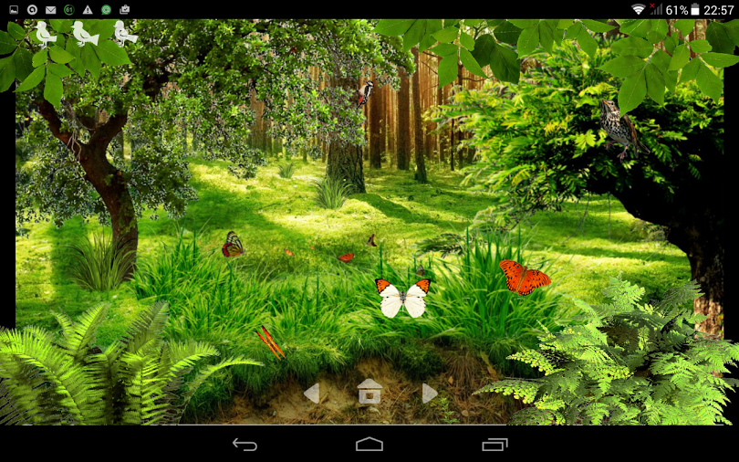Все картинки природы анимированные, некоторые сцены включают дополнительные (включаемые-отключаемые) звуки. Летающие и поющие насекомые, идущие по волнам корабли, плавно движущаяся вода, шевелящиеся от ветерка листья - вот далеко не полный список приятной глазу анимации. :)