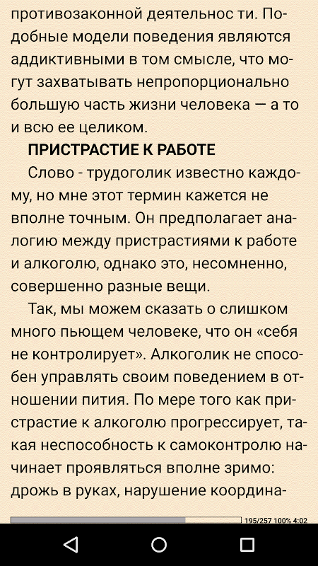 В книге наряду с давно известными вредными привычками (курением и алкоголизмом) также представлены "современные" - зависимость от телевизора, трудоголизм и некоторые другие.