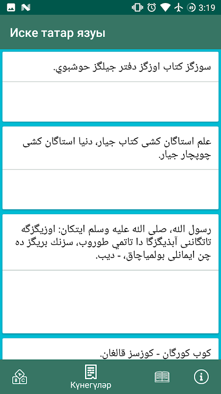 "Иске татар язуы" - татар халкының Ислам динен кабул иткәннән бирле кулланылышта булган гарәп графикасы нигезендәге әлифбалар белән таныштыручы кушымта.