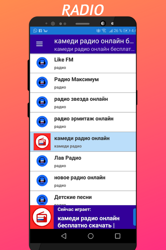 Приложение доступно для передачи через сеть Интернет и воспроизводит по радио камеди радио онлайн бесплатно скачать.