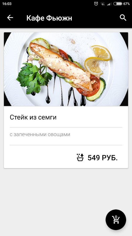 Как сделать заказ в приложении “Кафе Фьюжн”: выберите понравившиеся позиции из меню, добавьте их в корзину и перейдите на экран оформления заказа (по нажатию на иконку корзины).
