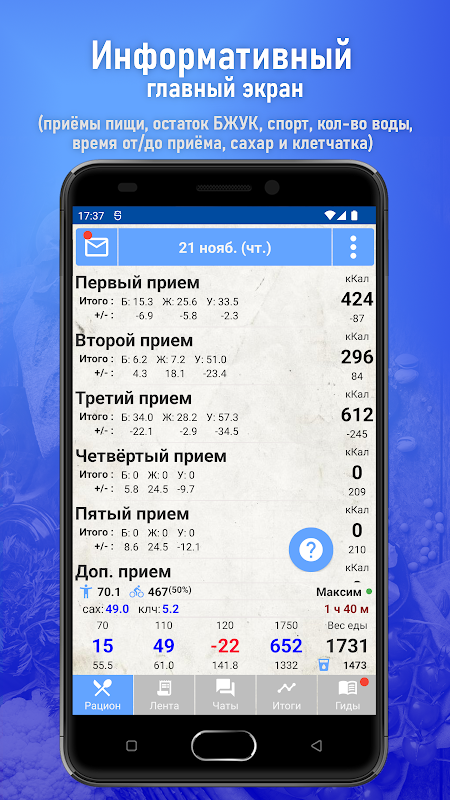 کے پرانے ورژن Счетчик калорий - Килоконтроль