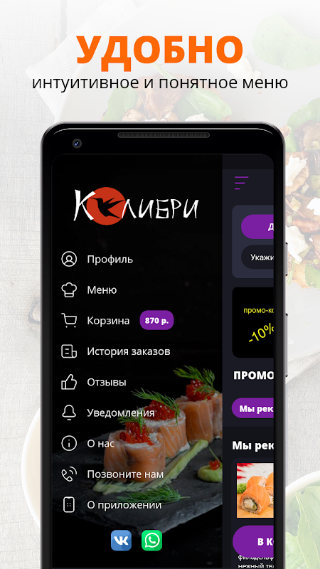 دسمبر 2015 سے، ہم سوچی میں تیار شدہ کھانے کی ترسیل میں سرگرمی سے مصروف ہیں۔ ہمارے مینو میں آپ کو سوشی، رولز، پیزا، برگر، ڈیزرٹس اور مشروبات ملیں گے۔