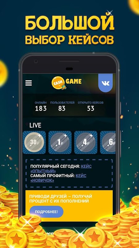Друзья рады представить вам приложение по открытию кейсов Кэш гейм.
