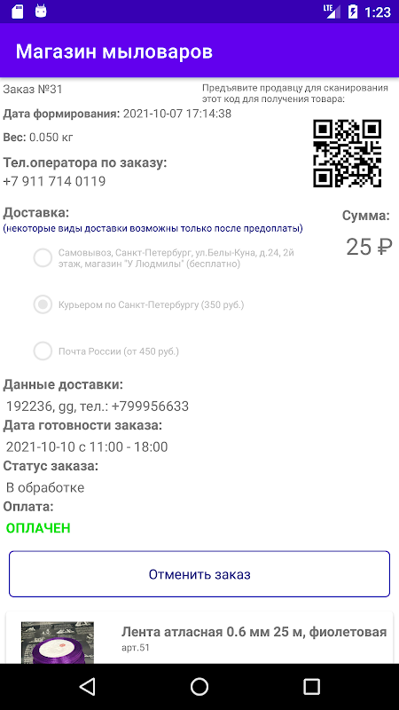 خریداری "Ludmila میں" (سینٹ پیٹرزبرگ). ایپلی کیشن آپ کو صابن بنانے والوں کے لیے مصنوعات کی خریداری کرنے کی اجازت دیتی ہے۔ مختلف قسم کے تیل، فعال اجزاء، سرفیکٹینٹس، خوشبویات، روغن اور دیگر۔ آپ سامان کا آرڈر دے سکتے ہیں اور اگر ضروری ہو تو ترسیل کی قسم کا تعین کر سکتے ہیں۔ یہ ایک آفیشل آپریٹنگ اسٹور ہے جو اس پتے پر واقع ہے: سینٹ پیٹرزبرگ، بیلا کن سینٹ، 24 (دوسری منزل، آئی پی پوگوڈینا ایل اے او جی آر این: 318470400019070)۔
