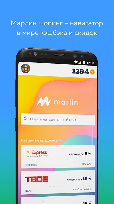 Marlin Shopping - приложение для покупок. Ищите в нём как в обычном браузере, а мы подскажем вам, в каких магазинах есть кэшбэк.