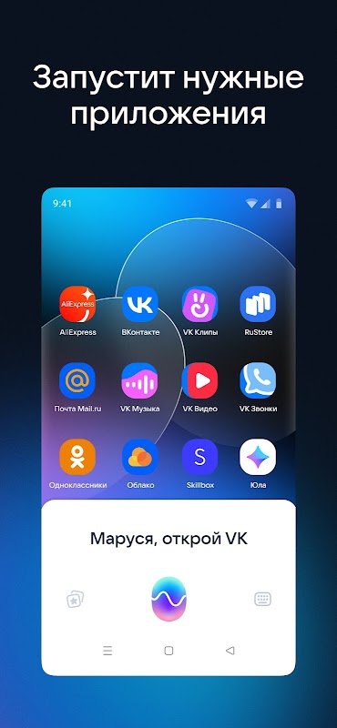 Marusya VK کا ایک دوستانہ صوتی معاون ہے جو آپ کے سوالات، ویڈیوز اور آپ کی پسند کے مطابق موسیقی، گیمز، پریوں کی کہانیوں اور بچوں کے کارٹونز کے جوابات تلاش کرے گا۔ ریڈیو آن کریں، خبریں پڑھیں اور بتائیں کہ موسم کیسا ہے۔ یہ آپ کو فون، واٹس ایپ کے ذریعے VKontakte پر دوستوں کے ساتھ آسانی سے بات چیت کرنے اور اپنے سمارٹ ہوم کا انتظام کرنے میں مدد کرے گا۔