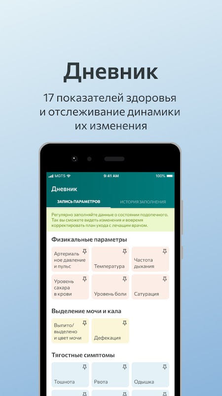 - стала доступна функция выгрузки pdf-отчета по истории изменения параметра здоровья для консультирования с лечащим врачом вашего подопечного и корректировки назначений;
