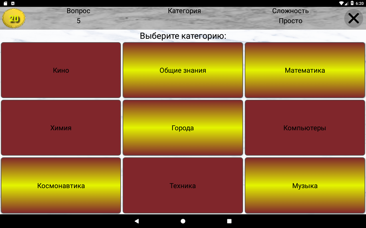 Каждый уровень содержит 9 тематических вопросов.