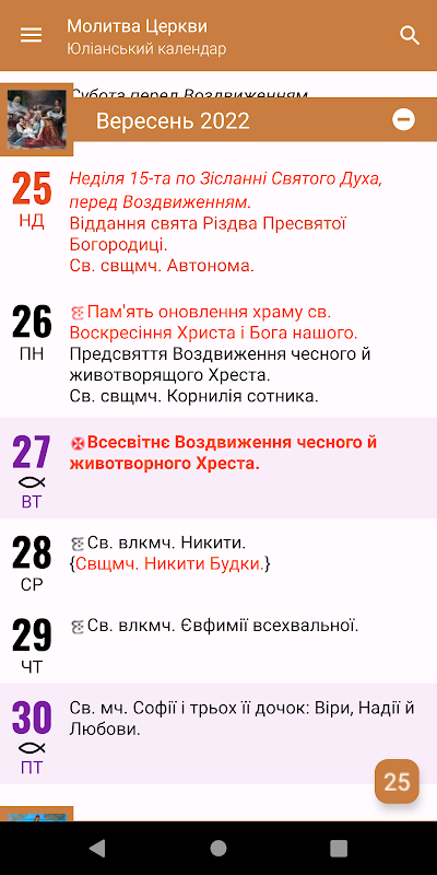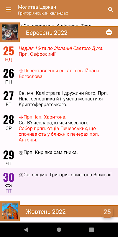 چونکہ کسی مقدس دن کی تاریخ کو جانے بغیر اس کے احترام میں دعا کرنا مشکل ہے، اس لیے کیلنڈر میں مقدسین کی زندگیوں کے مختصر اقتباسات کے ساتھ ساتھ فادر جولین کیٹری نے اپنے کتابچے "پرلز آف دی ایسٹرن فادرز" میں کلیسیا کے فادرز کے کاموں کے اقتباسات بھی شامل کیے ہیں۔