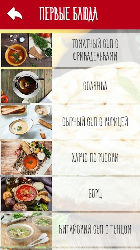 Разделение по типам блюд, а точнее первые блюда, вторые блюда, закуски, салаты и так далее.