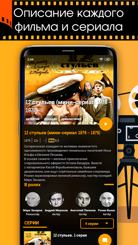 - کاسٹ ، دلچسپ حقائق ، ناظرین کی درجہ بندی اور جائزوں کے اشارے کے ساتھ ہر فلم اور سیریز کی ایک مفصل تفصیل