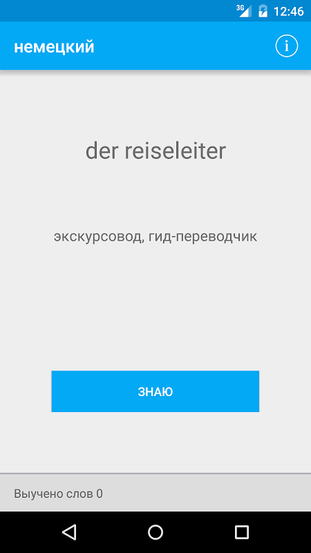 Приложение не требует соединения с интернетом, а значит изучать карточки немецких слов вы сможете где угодно.