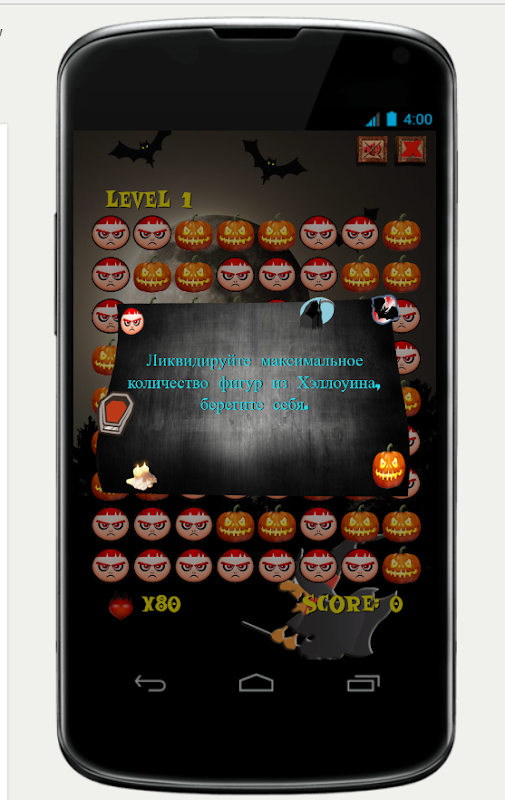 Ликвидируйте максимальное количество падающих одинаковых фигур. Нажатие меньше двух фигур, уносит одну из ваших жизней в дар Хэллоуину.